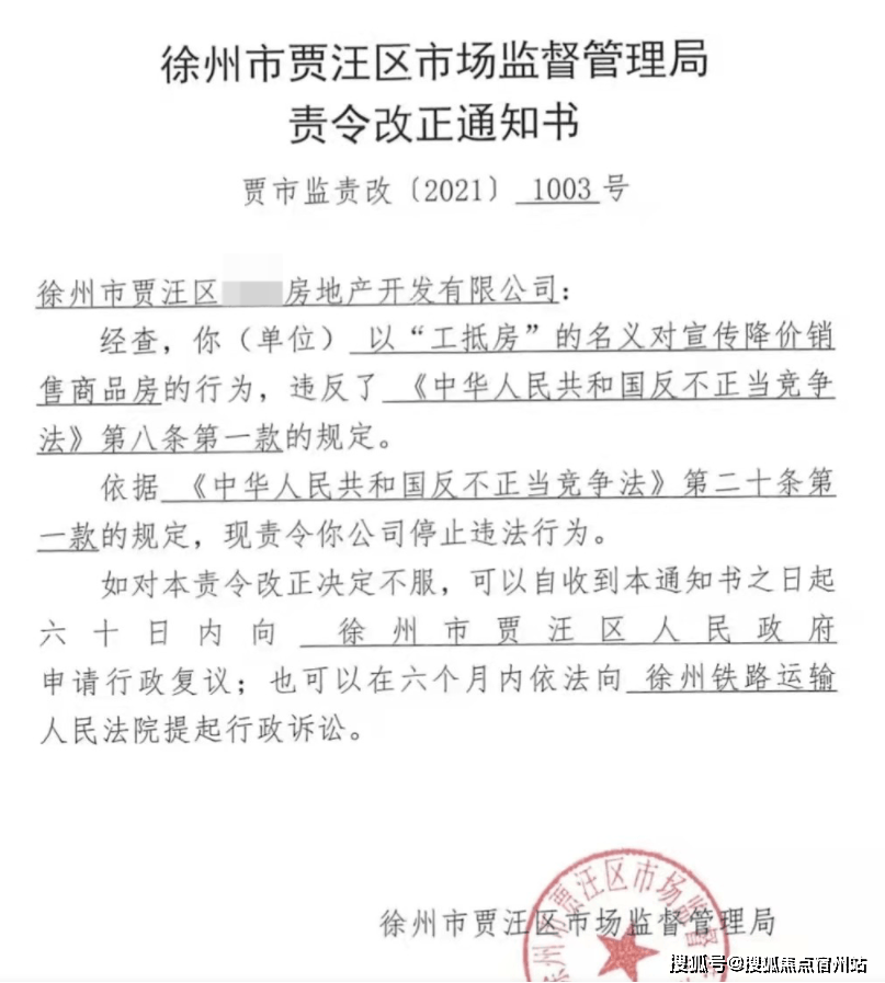 徐州贾汪市场监视办理局曾对某房地产开辟公司下达责令整改通知书!