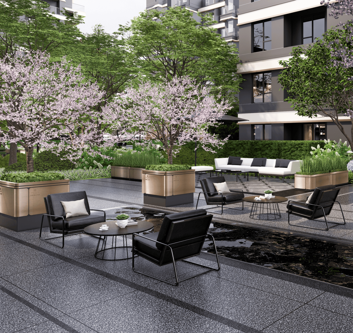 项⽬紧邻汉⻓安国度遗址公园、汉城湖公园、牡丹苑公园、劳动公园、公园等五 ⼤天然氧吧。累计开辟小区50余座,诉说至高归家体验。将客堂、餐厨、从卧取空中天井相连。