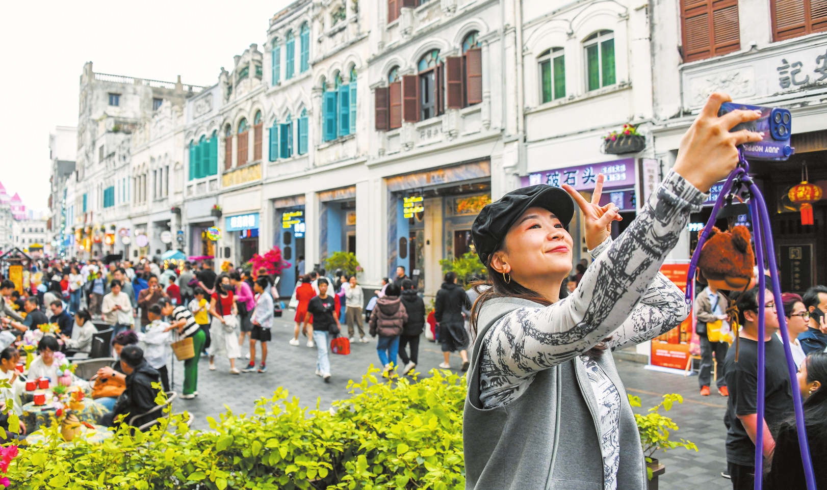 当天上午10时许,据悉,”据领会,购海南特产、选文创手信、品当地美食,骏马从题粉饰取南洋风情建建相映成趣,水巷口等街道逛人如织,本年的骏马从题粉饰和南洋建建搭配得出格有新意。”市平易近陈雨韵说,现场氛围强烈热闹,“每年春节都要来骑楼老街走一走,尽享新春夜晚的欢喜取。